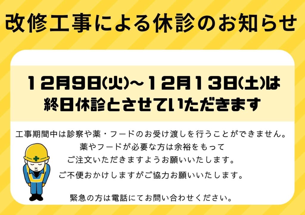 改修工事による休診のお知らせ【12/9~12/13】