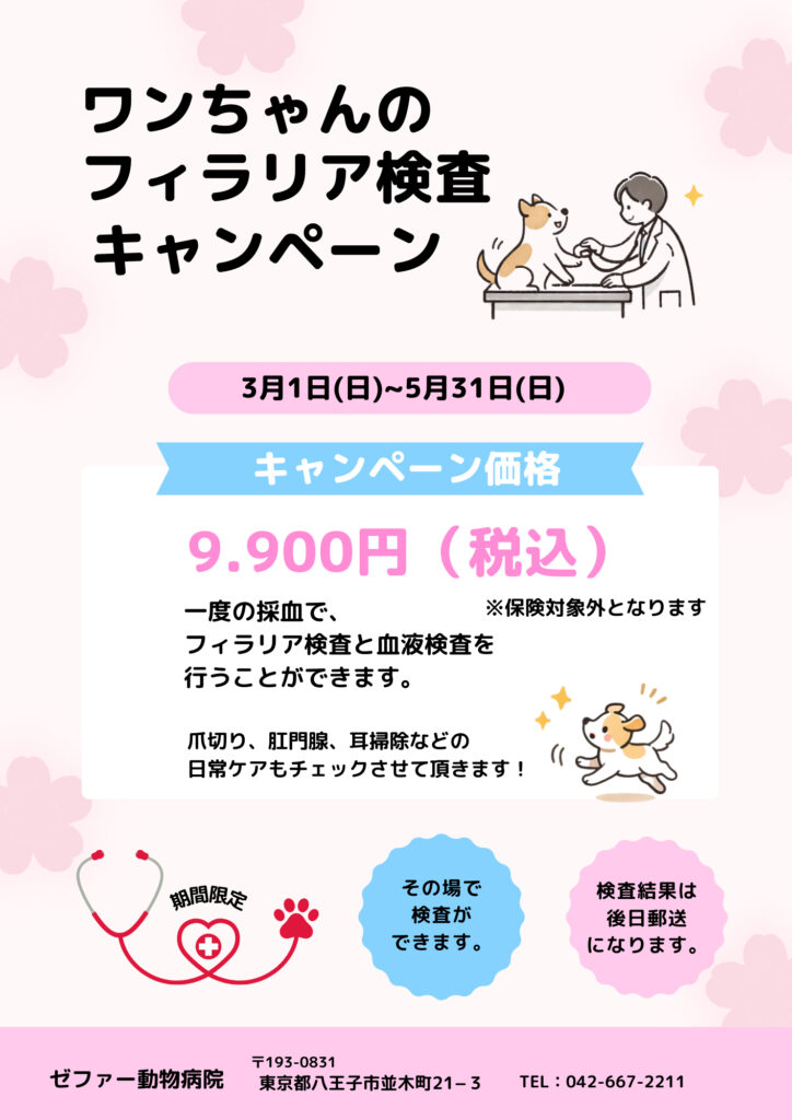 フィラリア検査キャンペーン開催中【2026/03/01~05/31】
